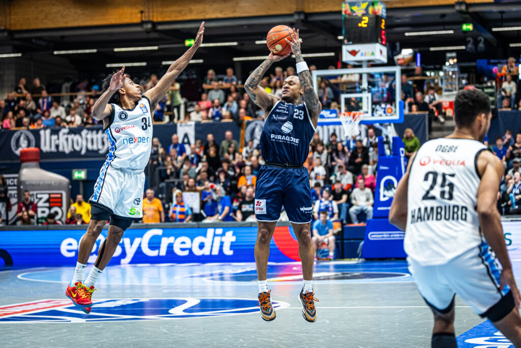 Spielverlauf und Wendepunkte: Die Gastgeber legten einen 10:0-Start (4.) vor, setzten sich nach einem Dreier des gut aufgelegten Marcus Foster zeitweise bis auf zwölf Punkte ab (28:16/9.). Vom zweiten Viertel an begann Hamburg allerdings, die defensive Intensität zu erhöhen. Vor allem nach dem Seitenwechsel hatten die Norddeutschen ihren Rhythmus gefunden. Zacharie Perrin brachte sie von der Freiwurflinie erstmals in Führung (53:52/24.). Treibende Kraft hinter dem Comeback war allerdings Devon Daniels, der beinahe aus allen Lagen traf. Was sich wortgleich von Charles Callison behaupten lässt, der im Schlussviertel so richtig aufdrehte und den Wölfen dabei half, das Match abermals zu drehen. Daniels hätte eine Sekunde vor Schluss per Dreier ausgleichen können, verfehlte aber deutlich. Im Gegenzug wurde Callison gefoult und stellte den Sieg sicher.